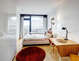 Cocina de apartamento, Placa de cocción de cerámica (2 placas), congelador y nevera combinado, microondas, completa con platos