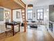 El piso está equipado con una muy buena cocina plana. Todos los utensilios de cocina están ya disponibles. Toda la zona de estar y de dormir presenta un bonito y cuidado suelo de parqué en espiga. Los altos techos se han aprovechado al máximo equipando el salón y el dormitorio con una cama tipo loft.