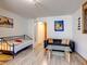 sofá, cama individual, mesa con 2 sillas, pantalla mediática