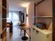 El amplio escritorio demuestra que aquí el trabajo es lo principal. Una cocina americana de alta calidad totalmente equipada, cómodas camas con somier y detalles cuidados caracterizan este tipo de habitación.