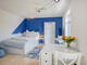 cama tipo francés, mesa con 2 sillas, sillón, estante, armario