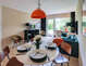 Salón-comedor con sofá y un comedor
