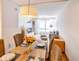 Muebles de cocina integrados, con ventana, horno de cerámica, horno eléctrico, frigorífico con congelador, lavavajillas, mesa con 2 sillas, hervidor de agua, tostadora de pan, completa con platos