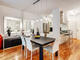 salón con sofás de cuero y un comedor