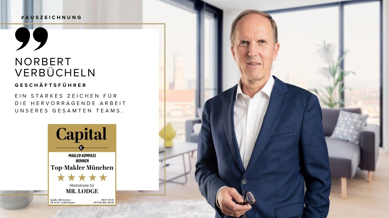 El mercado inmobiliario sigue siendo muy exigente y al mismo tiempo ofrece nuevas oportunidades para los inversores. En este entorno tan exigente, puede confiar en Mr. Lodge y en nuestros expertos, que no sólo evalúan el mercado de forma realista, sino que también ofrecen un servicio de la máxima calidad. Así lo confirma una vez más el premio de CAPITAL.