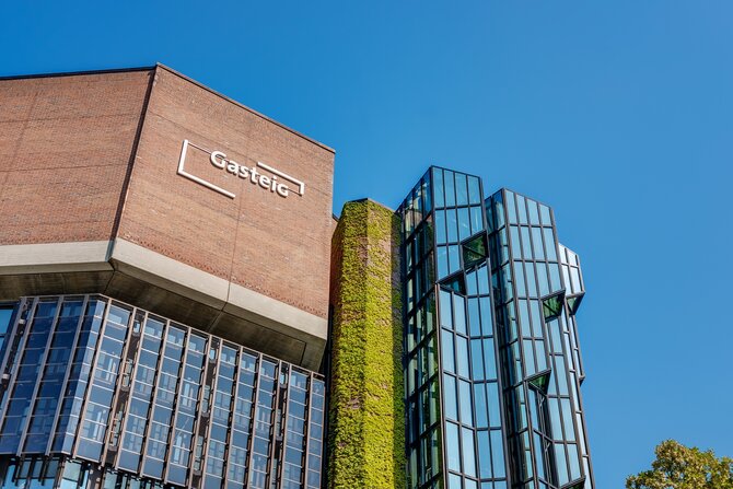 Después de la destrucción de importantes sitios culturales de Munich, los primeros planes para un centro de educación pública comenzaron en 1955. Este proyecto debía realizarse a orillas del Isar, en el sitio del antiguo hospital de Gasteig. A principios de los 70, se anunció un concurso de ideas. El concepto resultante se aplicó con restricciones por razones económicas. El Gasteig fue inaugurado ceremoniosamente en 1985. Alberga la Orquesta Filarmónica de Munich y el Conservatorio Richard Strauss, la biblioteca pública y el centro de educación para adultos. Las diferentes salas de eventos de la gran sala de conciertos de la Filarmónica de Munich, la pequeña sala de conciertos, la Carl-Orff-Saal y la Black-Box ofrecen espacio para eventos y actuaciones de todo tipo: conciertos clásicos y modernos, teatro, conferencias, lecturas, festivales de música, teatro-danza y mucho más se realizan aquí. Además, se celebran aquí regularmente exposiciones como la Muestra de Libros de Munich, el Festival de Cine y las Jornadas de la Cultura Judía. La arquitectura abierta y los diferentes eventos, instituciones y usos hacen de Gasteig el centro cultural más importante de Munich.