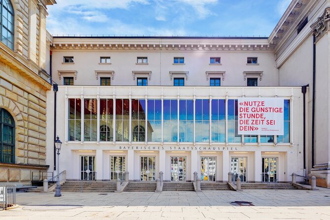 El nuevo Residenztheater se construyó en las paredes del antiguo Residenztheater, que fue destruido en la Segunda Guerra Mundial, y se reabrió en 1951. El antiguo mobiliario rococó del edificio se salvó durante la guerra y fue reinstalado en el vecino Teatro Cuvilliés. A finales de la década de 1980, el teatro fue renovado extensamente y equipado con la última tecnología de iluminación y escenario. El Bayerisches Staatsschauspiel, pero también los conjuntos invitados, interpretan aquí clásicos antiguos y modernos. Así, además de las obras de Eurípides, Goethe o Handke, también se puede ver el "Bairisch-Diatonischer Jodl-Wahnsinn".