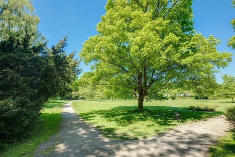 Numerosos espacios verdes, pista de tenis, picadero, baya café en primavera/verano