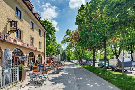 Sin embargo, el distrito no es tan tranquilo como parece a primera vista, ya que aquí también hay muchos pequeños pubs que invitan a quedarse. Hacia el sur se encuentra el Hirschgarten, la mayor cervecería al aire libre de Múnich, que atrae a multitud de visitantes, sobre todo en verano. La vida también palpita en los alrededores de Rotkreuzplatz, que es el centro de tráfico de Nymphenburg: aquí encontrará unos grandes almacenes, numerosas tiendas más pequeñas y cafés, así como el único cine sólo en inglés de la ciudad.