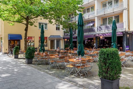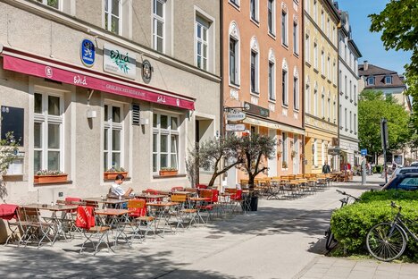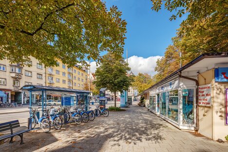 En la céntrica Hohenzollernplatz se celebran a menudo fiestas de barrio y mercadillos navideños. No lejos de aquí se encuentra la pequeña pero muy popular piscina Nordbad, mientras que el Luitpoldpark, más al norte, con la neobarroca Casa de Bamberg, es también una amplia zona de recreo en el corazón de la ciudad. La línea de metro U2 en la parada Hohenzollernplatz, así como las líneas de tranvía y autobús, ofrecen conexiones con el transporte público local. De este modo, es fácil y cómodo llegar a los demás distritos y al centro de Múnich.