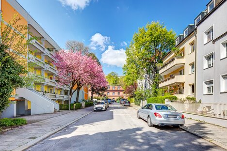 En este barrio hay principalmente casas unifamiliares y adosadas con jardín, pero también algunos edificios residenciales más grandes con hermosas propiedades. La ubicación es muy tranquila y también verde. Con Partnachplatz y Harras, hay dos estaciones de metro de la línea U6 en las inmediaciones. Esto significa que se puede llegar al Zentrum y al extrarradio en pocos minutos. Harras es también una parada del S7 S-Bahn y un intercambiador de autobuses, por lo que las conexiones de transporte público son excelentes.